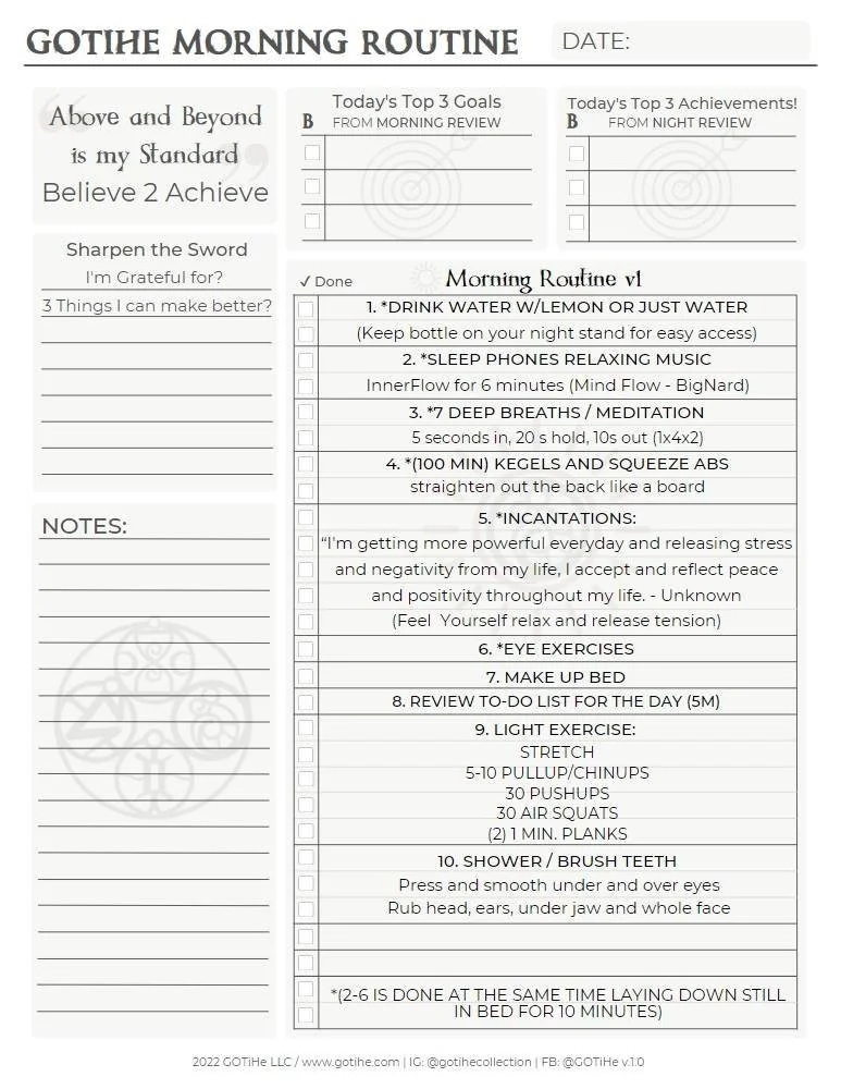 Free for a limited time - GOTiHe’s Believe 2 Achieve Morning Routine w/Blank Template. Follows the GOTiHe: 3 Ways to Let Your Mind Flow